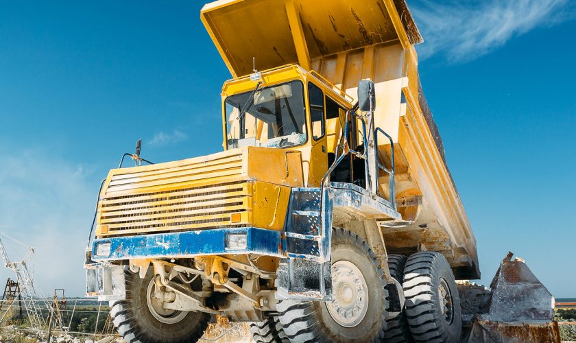 yellow Dumper industrial truck isolated on the white background. This has clipping path -